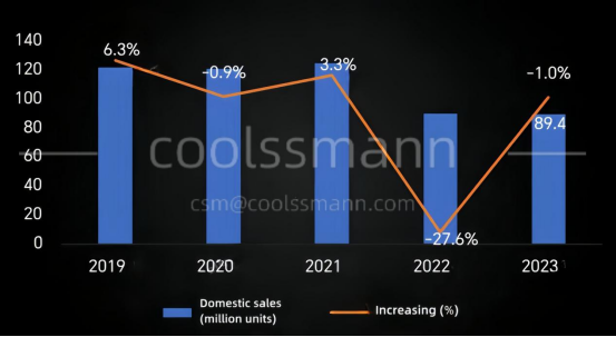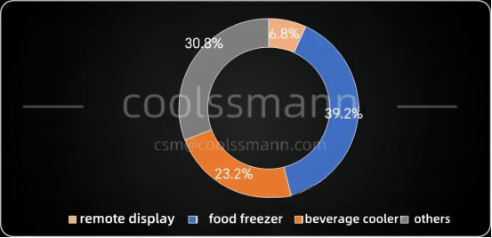 The sales of functional beverage brands have also risen, driving a modest increase in beverage cooler for convenience store; The size of remote display fridge has dropped due to the slowdown in opening large supermarkets, with sales occupying 6.8% in 2023. The unit price of remote display fridge products is high, occupying 27.6% of domestic sales.